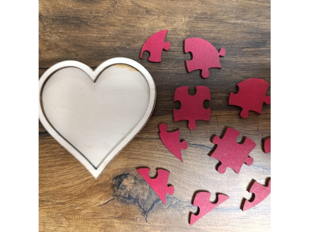 Tvar puzzlí může být např. do tvaru srdce (viz. naše foto) nebo klasický obdélníkový.