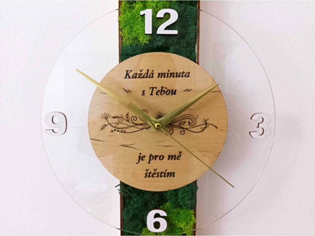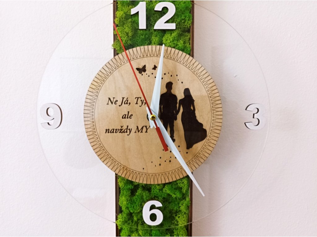 Mechové hodiny tematické, s věnováním vygravírujeme jakýkoliv text nebo grafiku